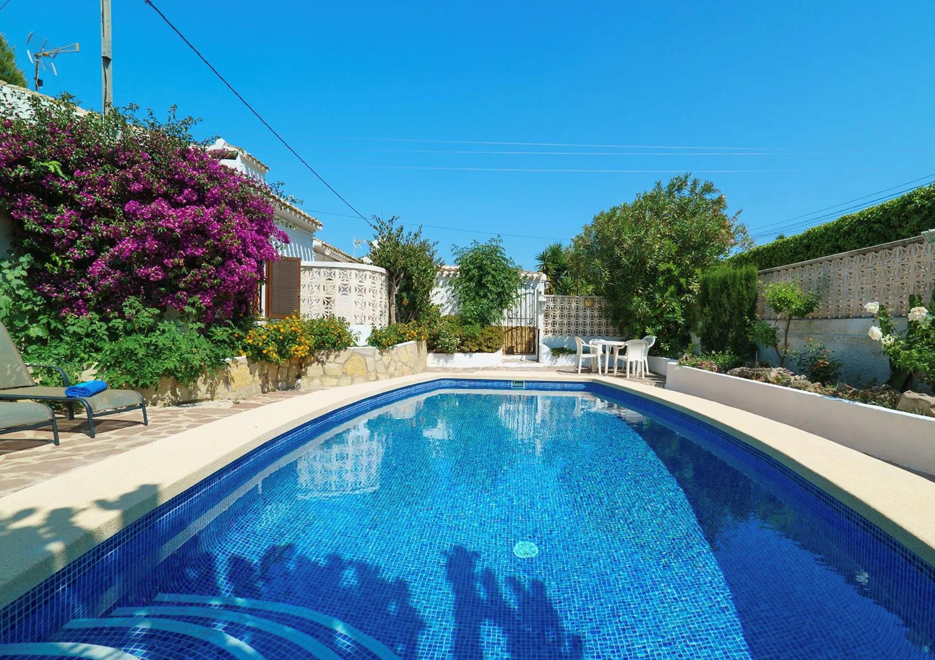 Maravillosa y encantadora villa con piscina privada en Jávea, Costa Blanca, España, para 6 personas. La casa se encuentra en una zona residencial cerca de la playa, a poca distancia de restaurantes y bares, a 3 km de la playa de El Arenal y a 4 km de Jávea. La casa cuenta con 3 habitaciones y 2 baños. El alojamiento ofrece privacidad, un jardín con césped y árboles, así como una hermosa piscina. La proximidad a la playa, lugares de compras, actividades deportivas, instalaciones de entretenimiento y vida nocturna hacen de esta villa un lugar ideal para pasar sus vacaciones en España con familia o amigos.